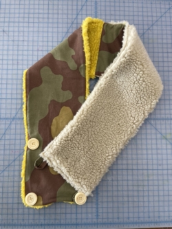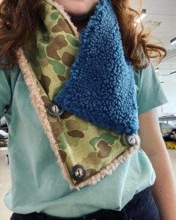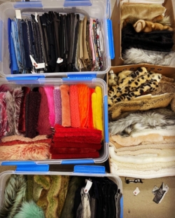 The neck scarf and pillows where made for show and display Three Looms fabric faux fur in use.