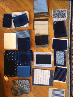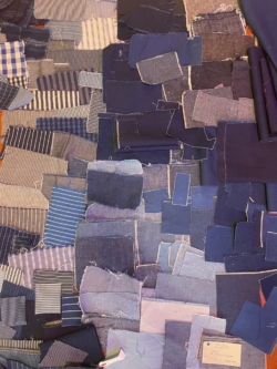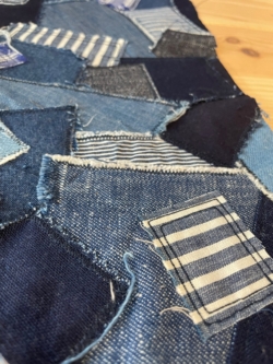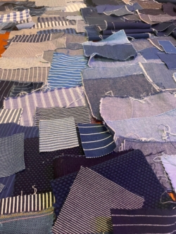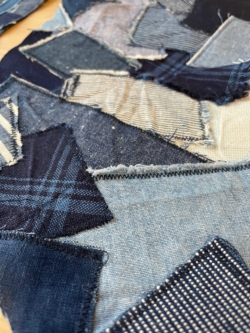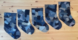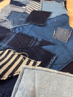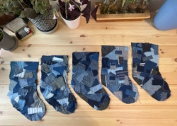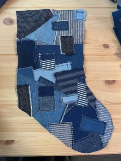 Christmas stalkings were commissioned by Three Looms. 20 stalkings to be holiday gifts to their most important clients. Made from their quality indigo fabric to be pieced and patched together inspired by the classic Japanese distressed quitting look.