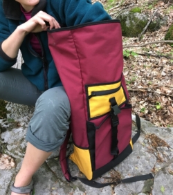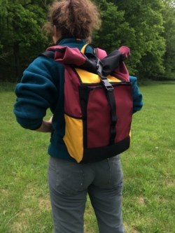Codey’s bag was designed as an everyday backpack to be taken to work, climbing gyms, studios, and other day trips. The pack needed to comfortably carry a laptop, 32 oz, water bottle, a change of clothes, a sketchbook, lunch, and other daily essentials such as a phone and wallet. In addition, it needed to accommodate rock climbing shoes clipped to the exterior. This bag was a functional prototype for me to use and wear for me to flesh out the details that needed improvement. Codey’s bag was the next iteration