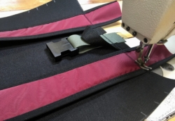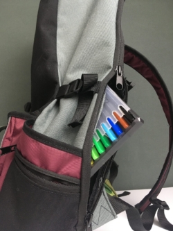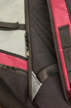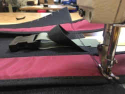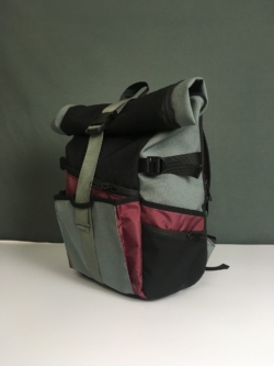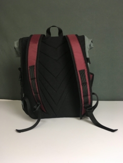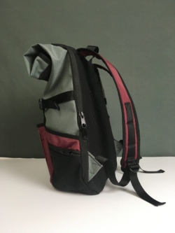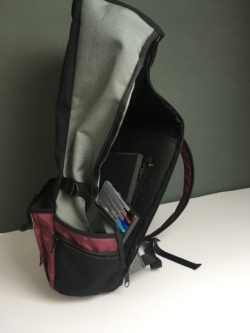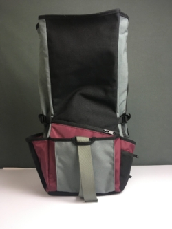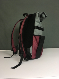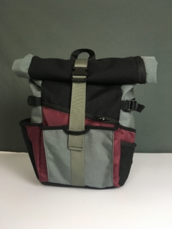 Built off previous backpack patterns to improve the bag’s function and look. The client was wanting a bag that had a padded laptop sleeve, room enough for a change of clothes, all the books she caries for the day, her lunch, and a big water bottle, altogether carrying approximately 10 – 30lbs. It has a zipper pocket and slip pocket on the right side for keys, wallet, and phone to stay safe. A water bottle pocket on the other side and a diagonal zipper pocket and pouch on the front. For quickly accessing without undoing the top of the bag, there is a zipper the length of the pack with two zipper slides. In addition to the laptop sleeve, there is also a small interior zipper pocket perfect size for passport pens and extra cash.
